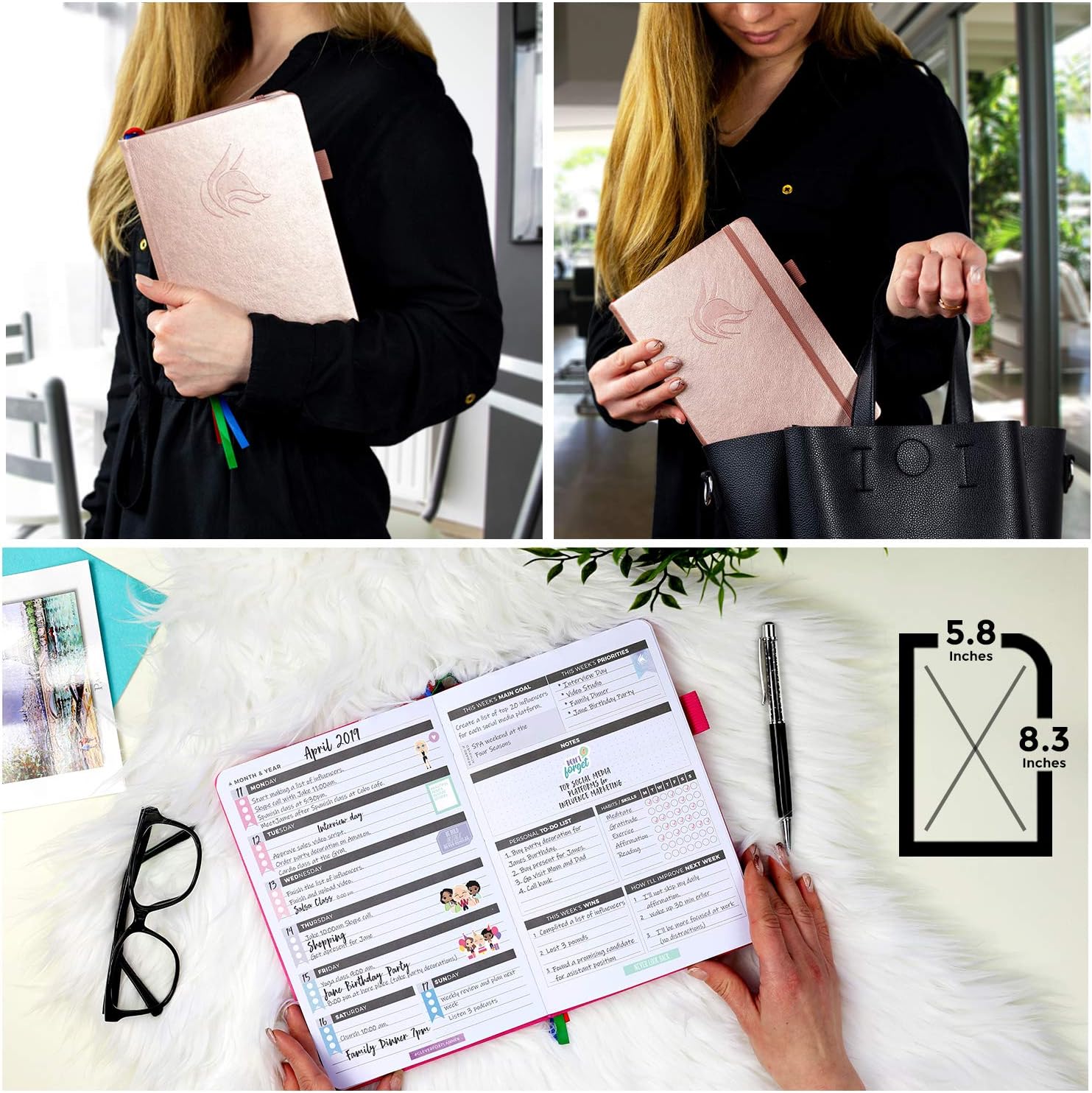 - UNDATED & UNIQUE LAYOUTS – An important feature of this planner is that it is undated; so, unlike most dated planners, you can start using it at any time of the year without wasting a page – it’s totally up to you to fill in the months and dates. That is why by design all 12 months come right up front and are then followed by the separate 52 weeks. Use 3 colorful ribbons to flip between weekly and monthly spreads.