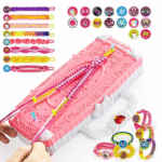 - Friendship Bracelet Making Set: The ultimate friendship bracelet making set provides everything you need for endless creativity. It includes a bracelet weaver, positioning pins (random colors), weaving ropes (random colors), sturdy rubber bands (random colors), bracelet buttons (random colors), colored stickers – all neatly arranged in a beautifully designed box that can also be used as a handmade board.